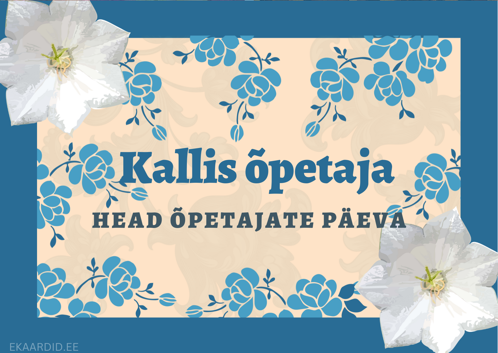 See on ilus õpetajate päeva kaart, mis on kaunistatud siniste rooside ja valgete lilledega. Saada see oma armsale õpetajale ja soovi talle head õpetajate päeva!
