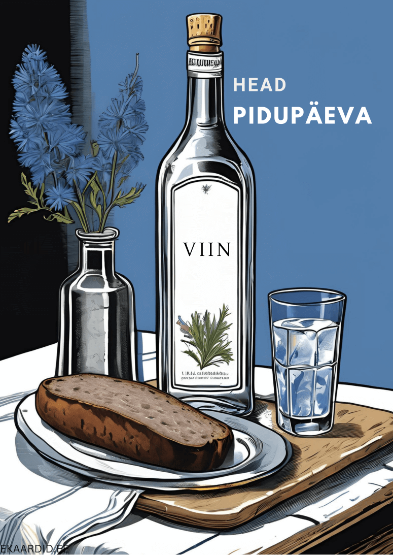 See on elegantne õnnitluskaart, mis sobib suurepäraselt pidulikeks sündmusteks. Kaardil on kujutatud veinipudel, klaas ja leib, mis sümboliseerivad head aega ja naudingut. Ideaalne kaart sünnipäevaks, aastapäevaks või muuks pidulikuks puhuks.