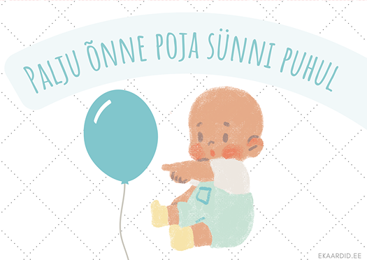 Soovi väikesele pojale palju õnne sünni puhul selle armsa õnnitluskaardiga. Kaardil on kujutatud armas beebi ja õhupall. See on ideaalne tahtpäevad-synd kaart.