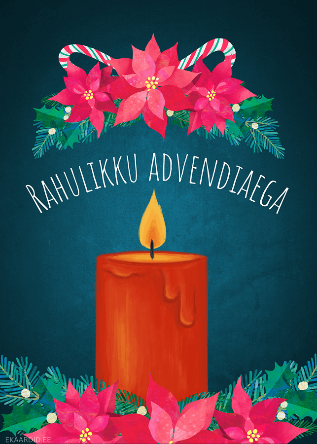 Soovi oma lähedastele rahulikku advendiaja olemist selle kauni kaardiga. Kaardil on kujutatud põlev küünal ja jõulukingad.