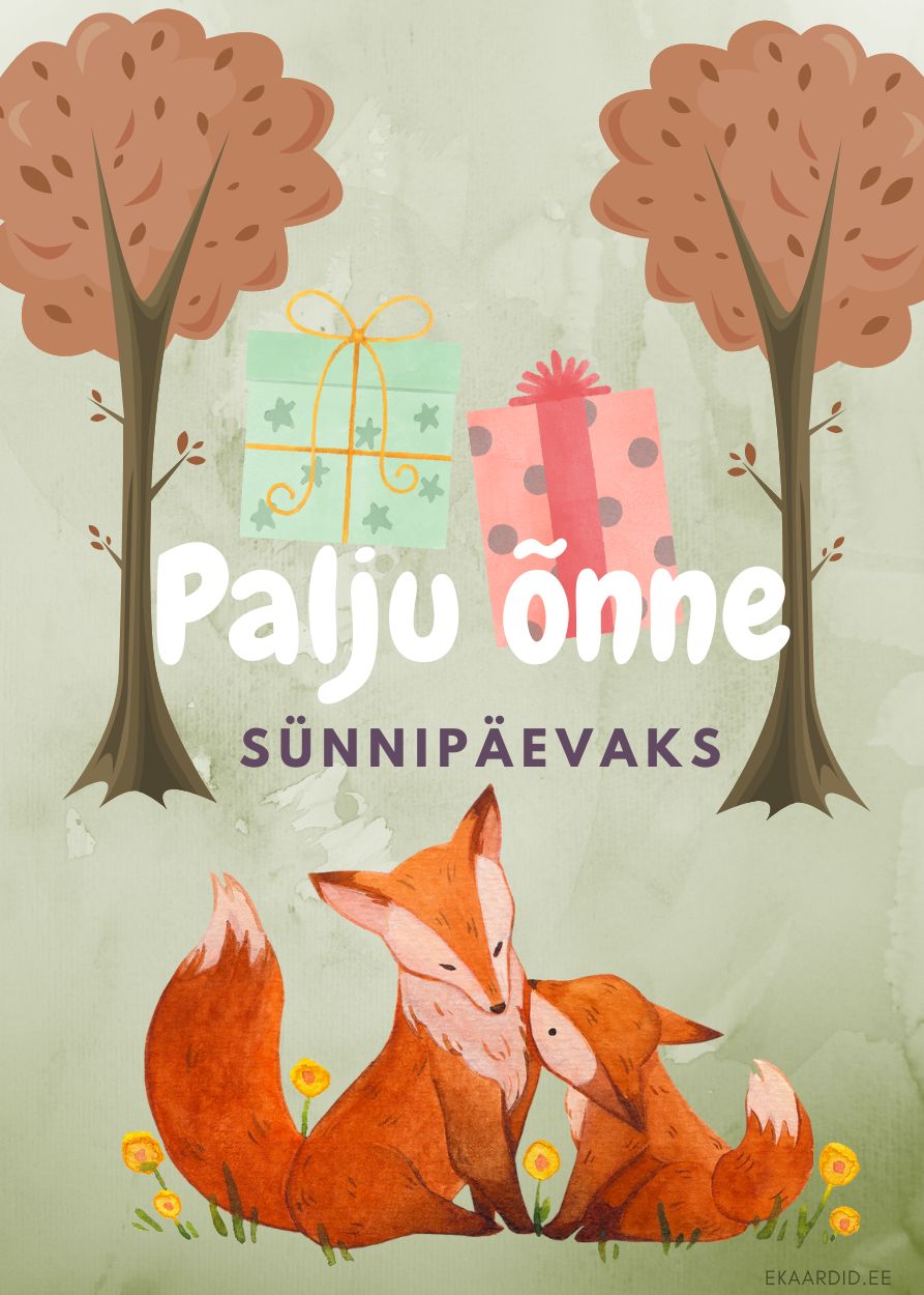 Sooja ja armsa rebaseperega sünnipäevakaart. See on ideaalne sünnipäevakaart väikesele lapsele, kes armastab loomi.