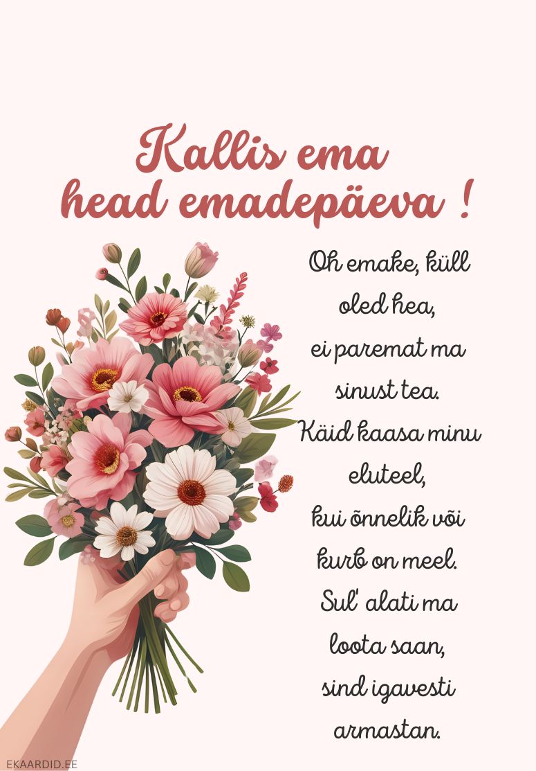 Soovi oma emale ilusat Emadepäeva selle õrna lillekimbuga kaunistatud kaardiga. See on ideaalne tahtpäevakaart, mis väljendab sügavat armastust ja tänulikkust.