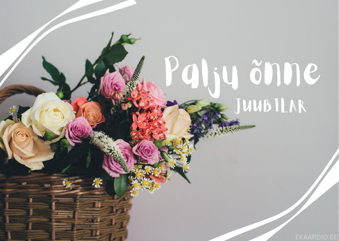 Soovi oma lähedasele palju õnne selle õrna lillekimbuga kaunistatud juubelikaardiga. See on ideaalne juubelikaart, mis väljendab soojust ja lugupidamist.