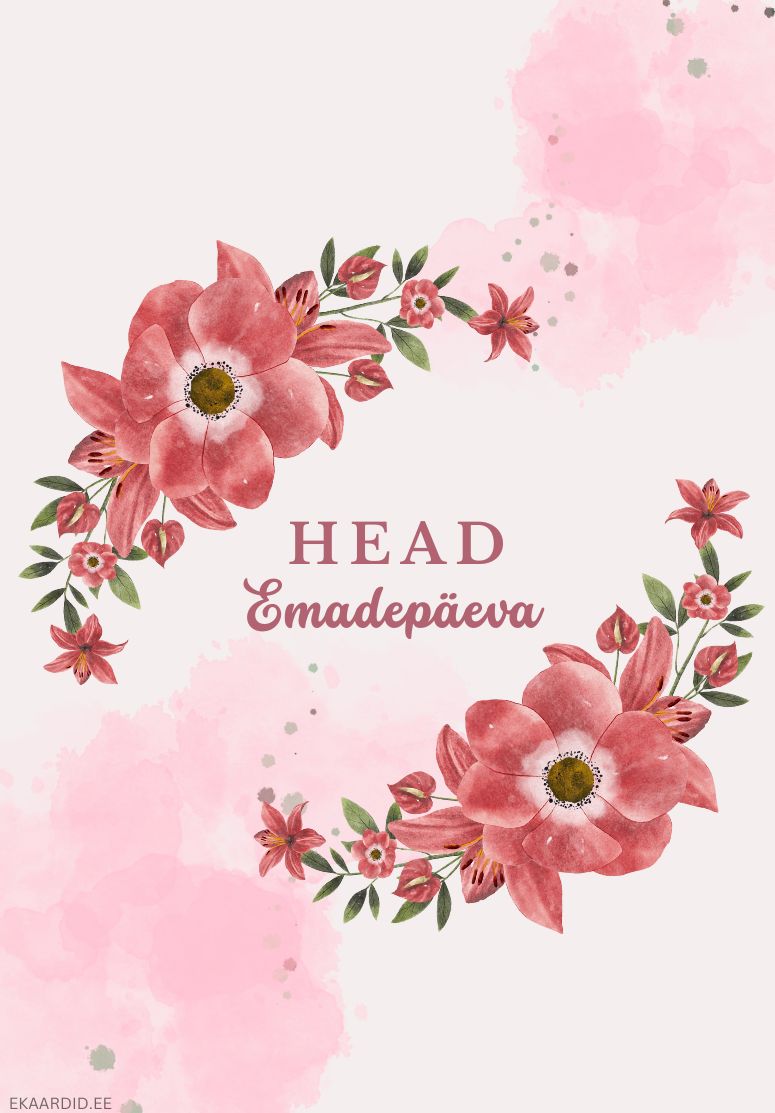 Soovi oma emale ilusat Emadepäeva selle õrna lillelise kaardiga. Kaunis roosade ja punaste toonidega akvarell-stiilis kaart sobib ideaalselt emadepäeva tähistamiseks.