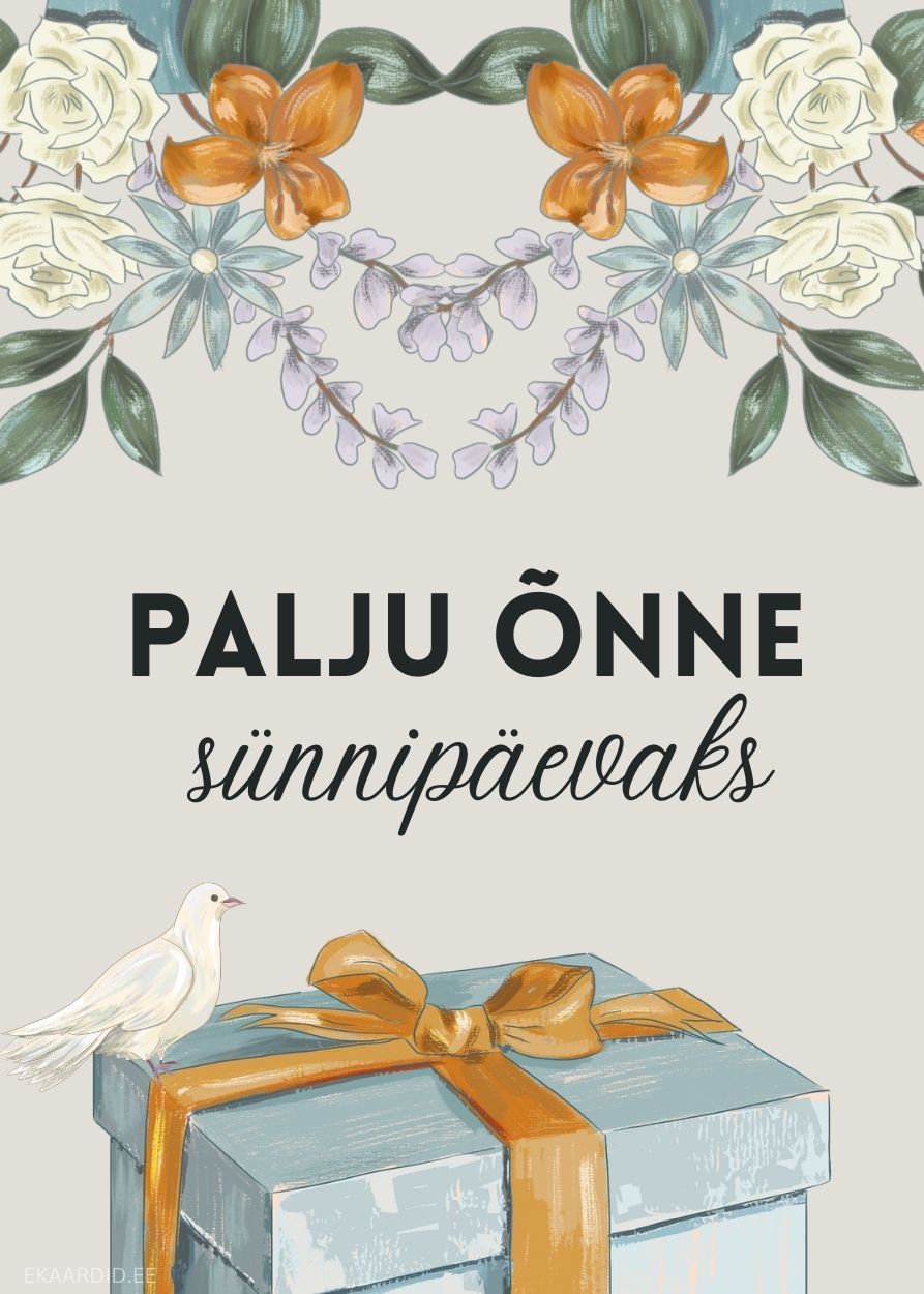 See on ideaalne sünnipäevakaart, mis on kaunistatud õrnade lillede ja armsa tuvi kujutisega. Sobib suurepäraselt lähedastele ja sõpradele.
