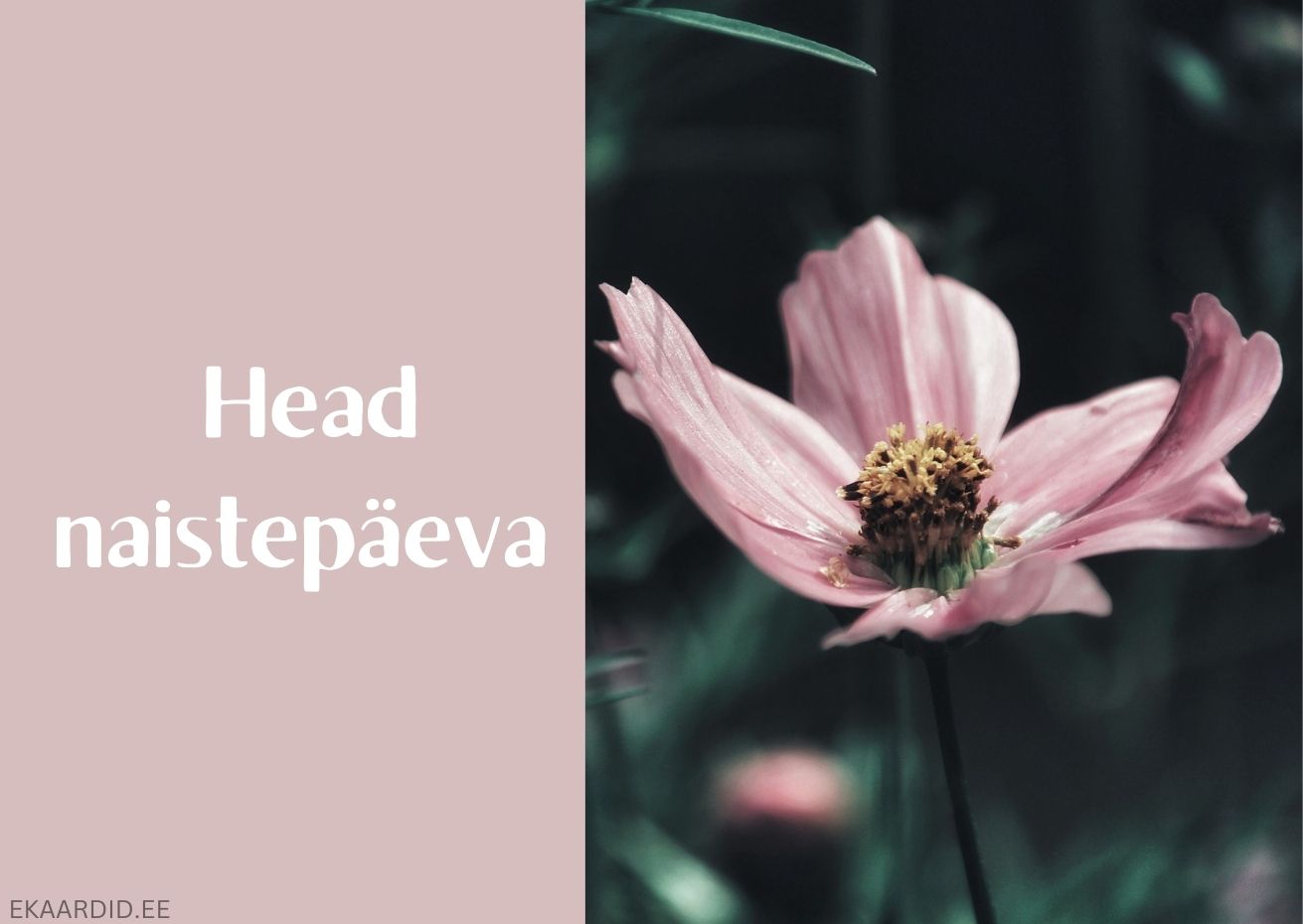 Soovi oma kallimale naisele ilusat naistepäeva selle õrna roosakas lillega kaardiga. See on ideaalne naistepäevakaart, mis väljendab hellust ja lugupidamist.