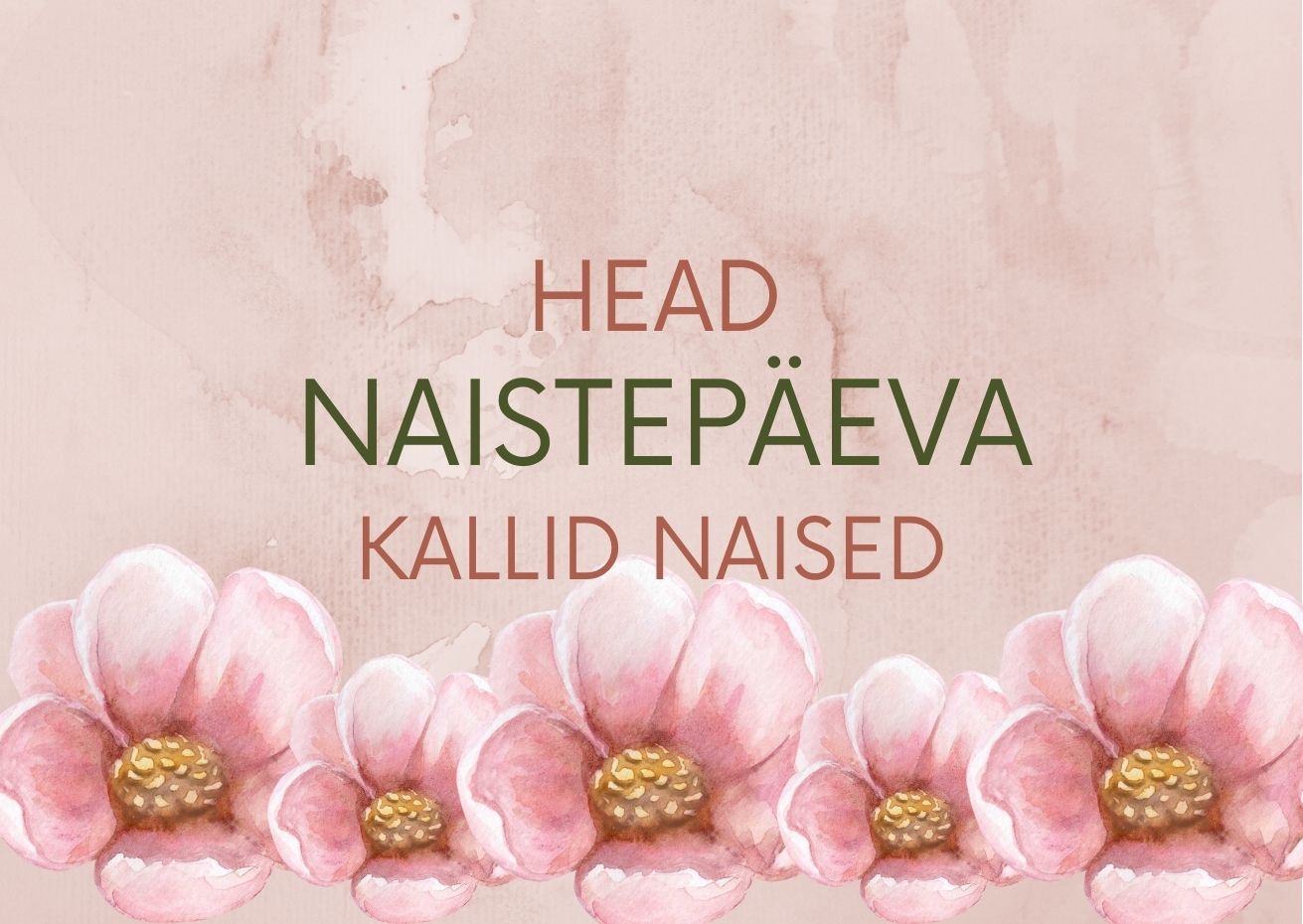 Soovi oma kallitele naistele ilusat naistepäeva selle õrna ja elegantse kaardiga. Kaardil on kujutatud roosad õied, mis sümboliseerivad naiselikkust ja ilu. See on ideaalne naistepäevakaart.