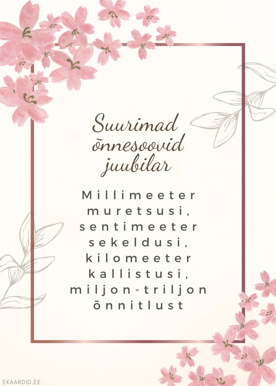 Soovi oma lähedasele palju õnne selle õrna roosade õitega juubelikaardiga. See kaart on täiuslik kingitus eriliseks sündmuseks.