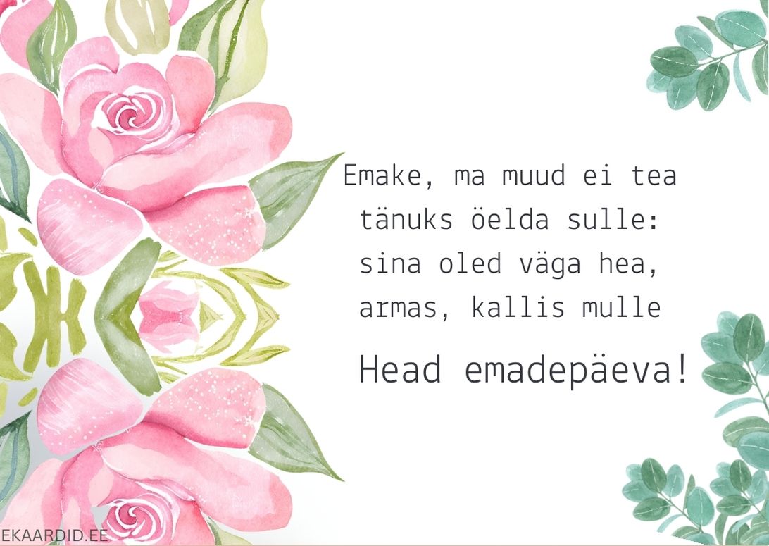 Soovi oma emale ilusat emadepäeva selle õrna roosidest kaardiga. See on ideaalne tahtpäevakaart, mis väljendab armastust ja tänu.