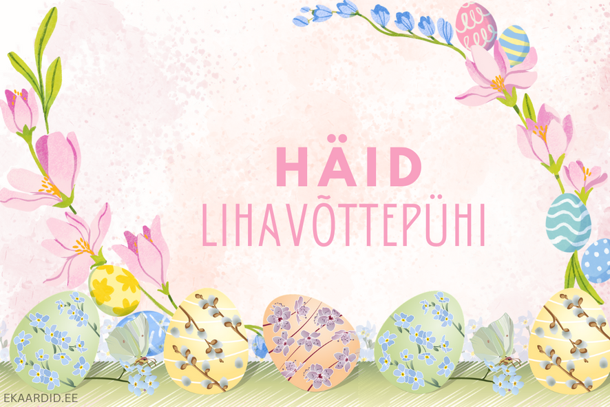 Soovi oma lähedastele häid lihavõttepühi selle kauni kaardiga, mis on kaunistatud õrnade lillede ja värviliste munadega. See on ideaalne lihavõttekaart perele ja sõpradele.