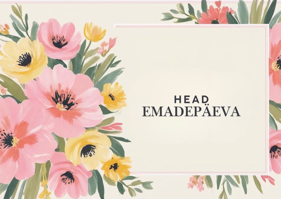 Soovi oma emale ilusat emadepäeva selle õrnade roosade ja kollaste lilledega kaardiga. See on ideaalne emadepäevakaart, mis väljendab teie armastust ja tänu.