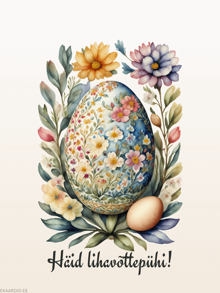 Soovi oma lähedastele rõõmsaid lihavõttepühi selle kauni, lilledega kaunistatud lihavõttemunakaardiga. See on ideaalne lihavõttekaart lähedastele ja sõpradele.