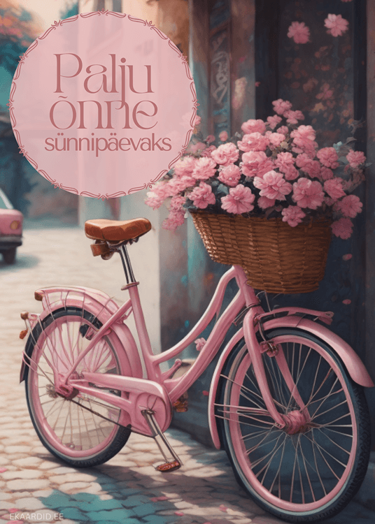 See on ideaalne sünnipäevakaart, mis sobib eriti hästi naistele. Kaardil olevad lilled ja armas ratas loovad õrna ja romantilise meeleolu. Saada see oma lähedasele, et näidata oma armastust ja hoolt.