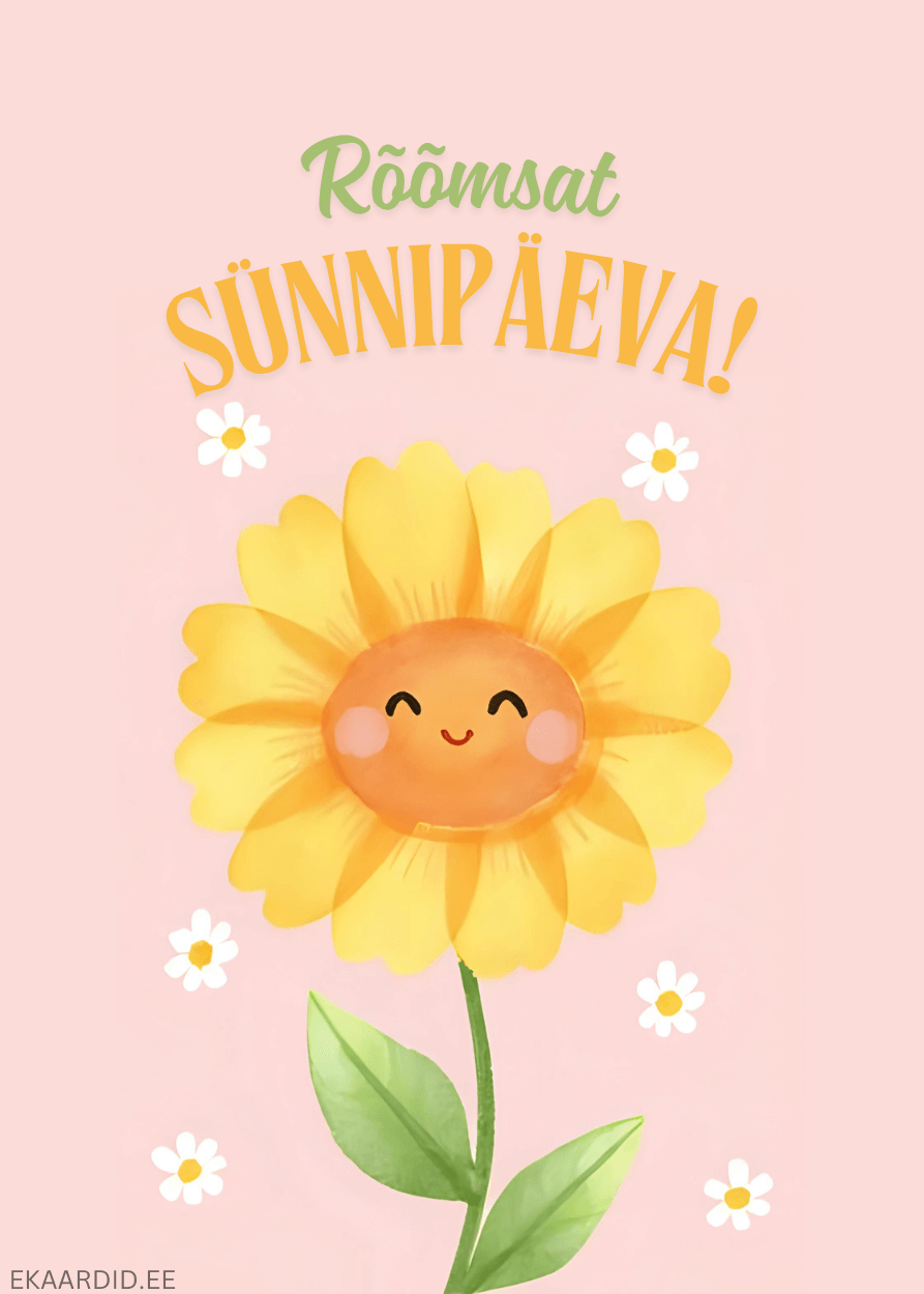 Saada see armas ja rõõmsameelne sünnipäevakaart, mis on kaunistatud armsa päikeselillega. Ideaalne kingitus lähedastele! Sünnipäeva kaart.