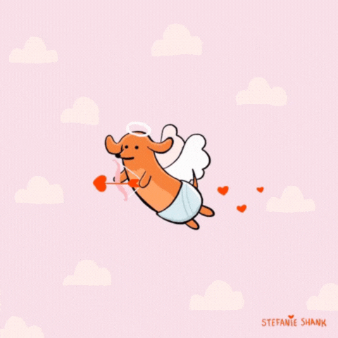 Sõbrapäeva GIF kaart lendava taksikoeraga