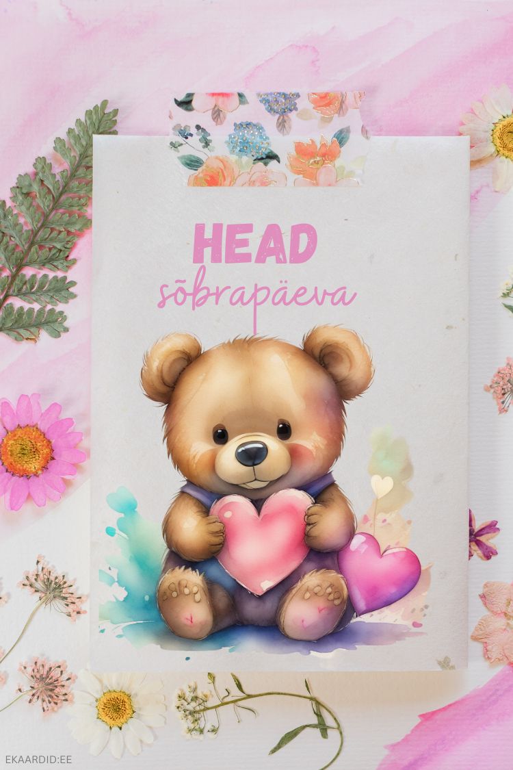 Soovi oma sõbrale ilusat sõbrapäeva selle armsa karu ja südamega kaardiga. See on ideaalne sõbrapäevakaart, mis toob naeratuse näole.