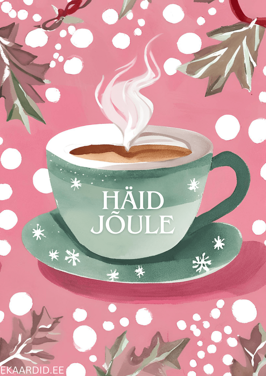 See on soe ja hubane jõulukkaart, mis kujutab sooja jooki rohelises tassikeses. Ideaalne jõulukingitus lähedastele.