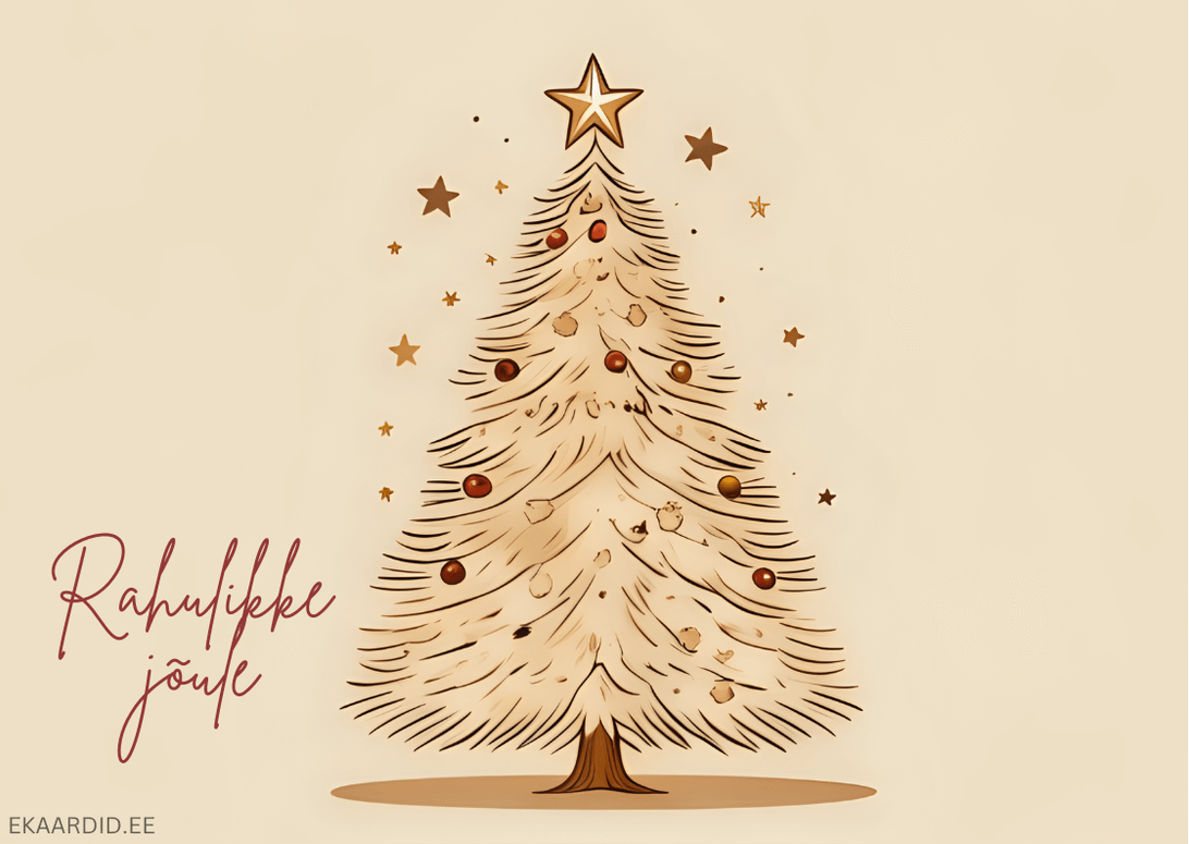 See on soe ja hubane jõulukaart, millel on kujutatud sooja tooniga jõulupuu. Ideaalne kaart jõulude soovide saatmiseks.