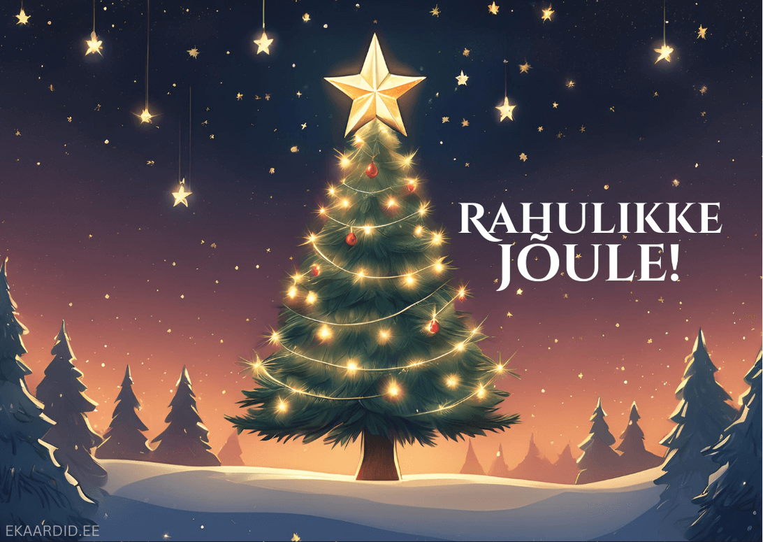 See on soe ja südamlik jõulukaart, mis kujutab lumist maastikku ja säravat jõulupuud. Ideaalne jõulukingitus lähedastele.