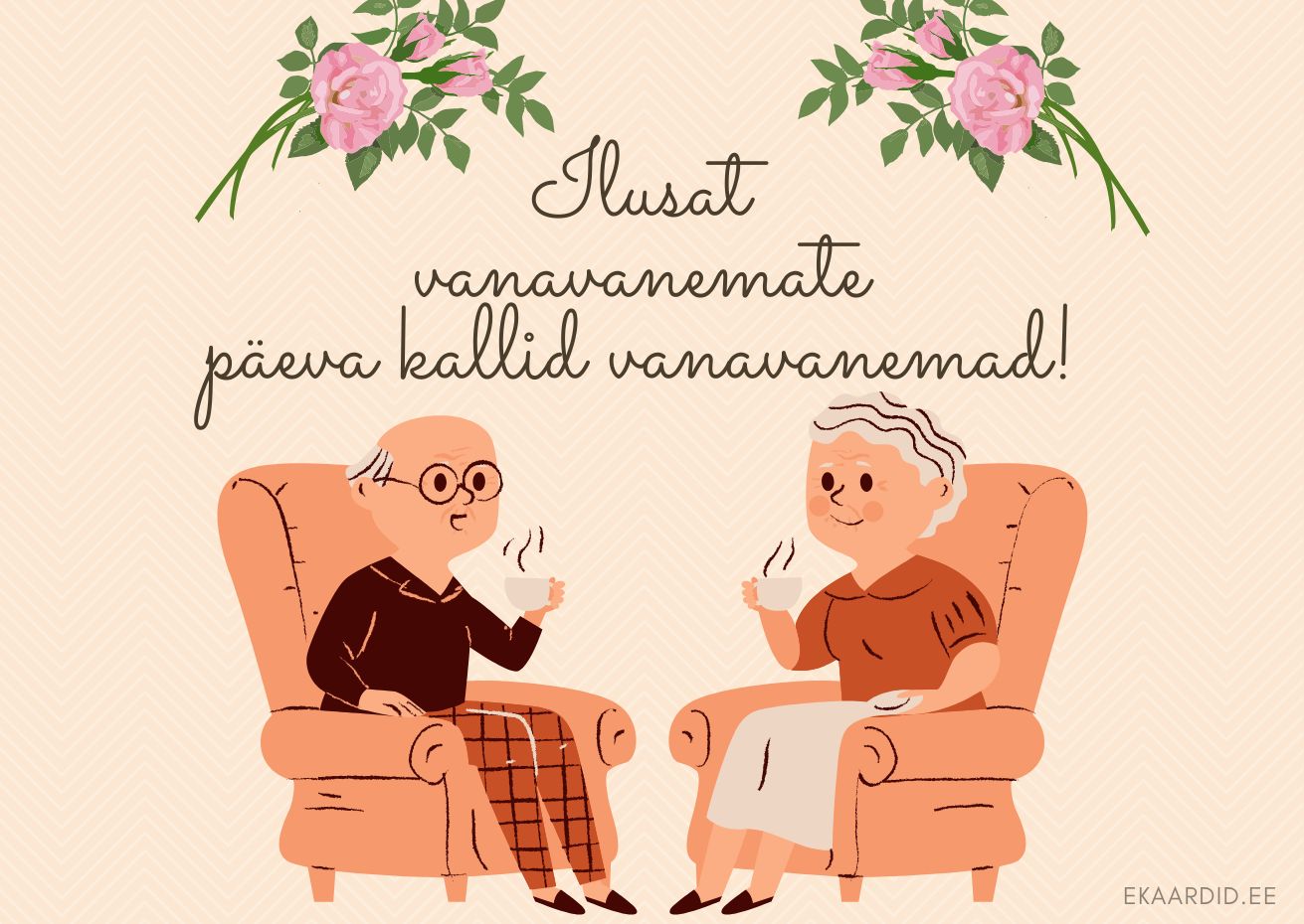 Ilus kaart vanavanemate päeva puhul. Soovi oma vanavanematele head päeva selle armsa kaardiga, mis kujutab kahte vanurit koos teed nautimas. See on ideaalne tahtpäeva kaart.