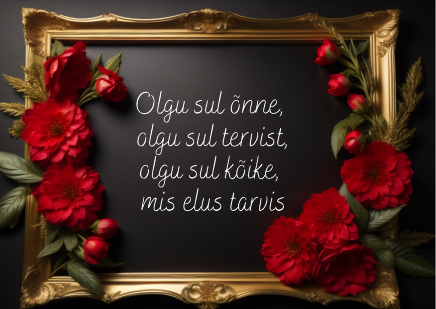 Ilus sünnipäevakaart luuletusega, mis soovib õnne, tervist ja kõike head. Sobib ideaalselt sünnipäeva tähistamiseks! Sünnipäevakaart luuletusega.