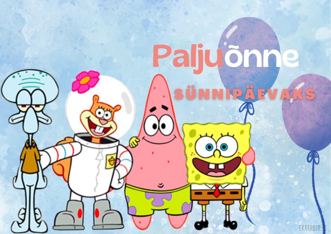Soovi oma sõbrale või pereliikmele palju õnne selle armsa SpongeBobi tegelastega sünnipäevakaardiga. See on ideaalne sünnipäevakaart lastele.