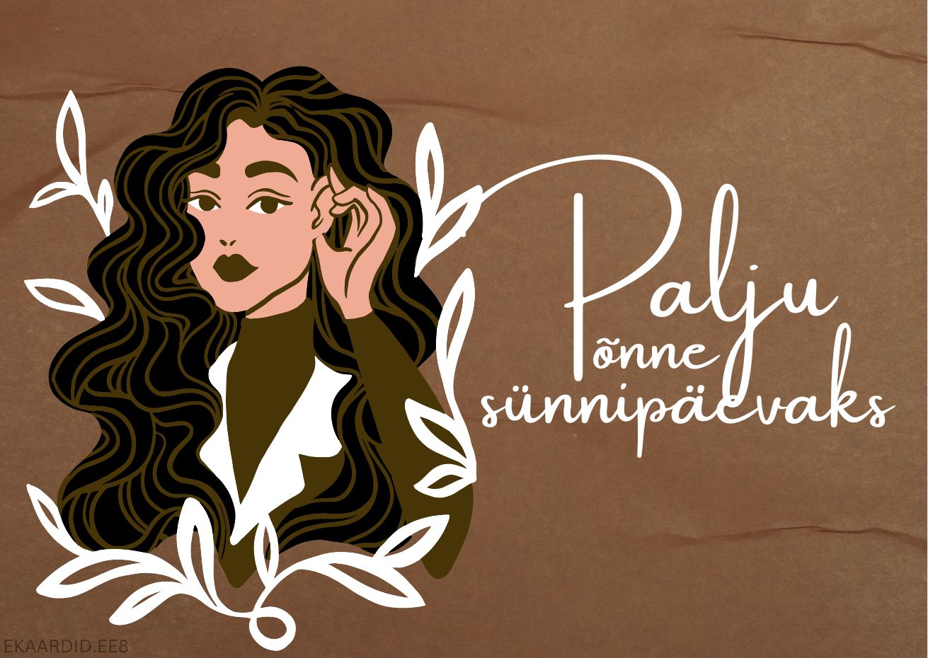 See on elegantne sünnipäevakaart naisele, millel on kujutatud naist tumedate juuste ja oliivrohelise riietusega. Kaart sobib ideaalselt sünnipäevade tähistamiseks.