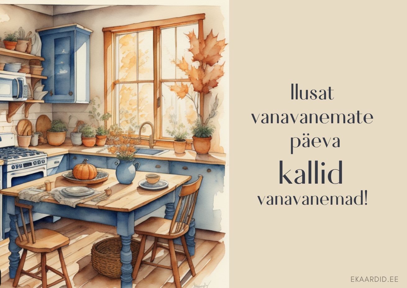 Soojad sügisvärvid ja hubane köögikeskkond teevad sellest vanavanemate päeva kaardi eriti eriliseks. See on ideaalne tahtpäeva kaart, mis väljendab armastust ja lugupidamist.