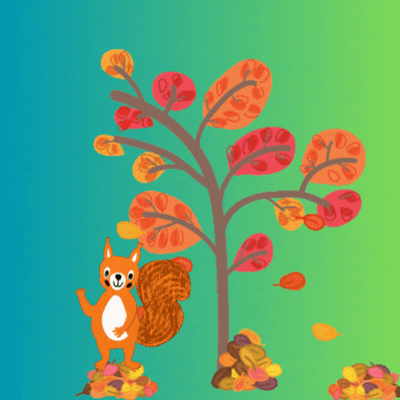 Sooja sügisest meeleoluga kaart, millel on armas orav ja värviline sügisene puu. See on ideaalne kaart sügisesete tervituste saatmiseks.