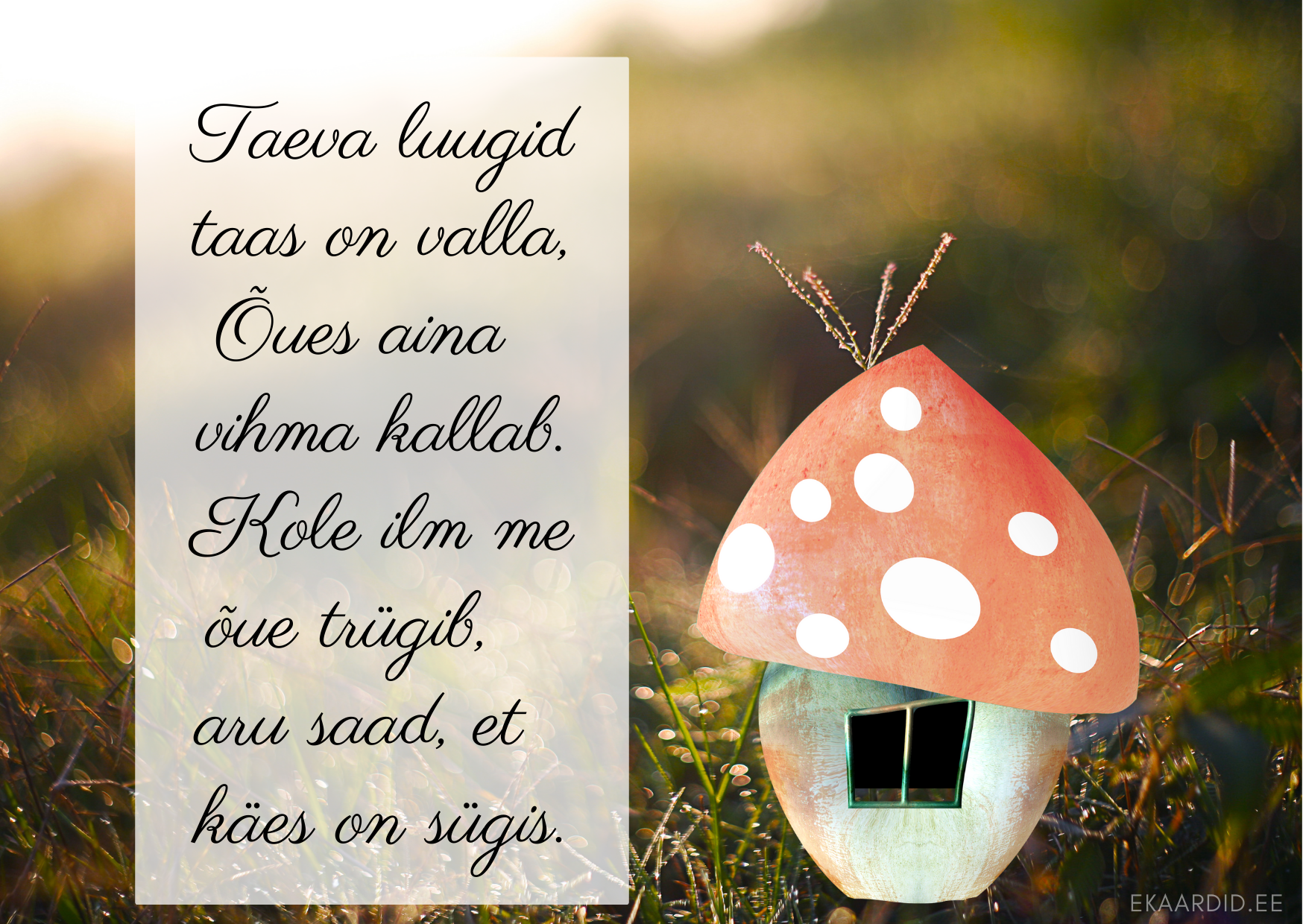 See kaart on kaunistatud armsa seenekujulise majaga ja sügisese luuletus. Ideaalne sügisese tervituse saatmiseks.