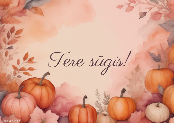 Sügisene tervituskaart kõrvitsatega