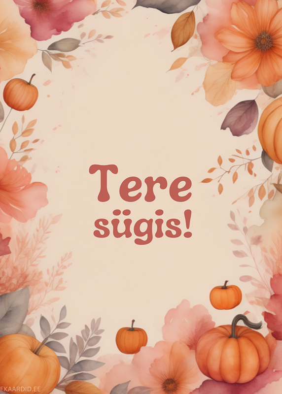 Sügisene tervituskaart lillede ja kõrvitsatega
