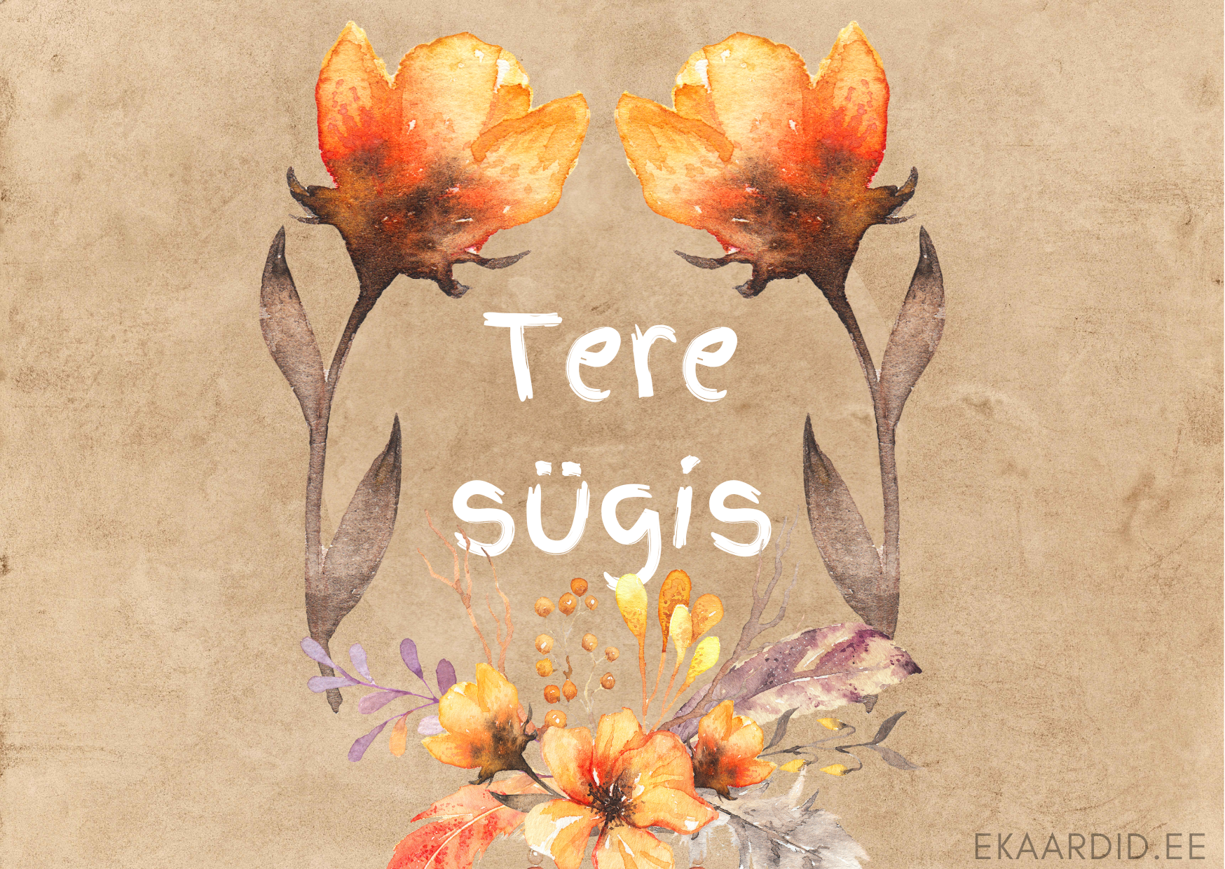 Sügisene tervituskaart oranžide lilledega