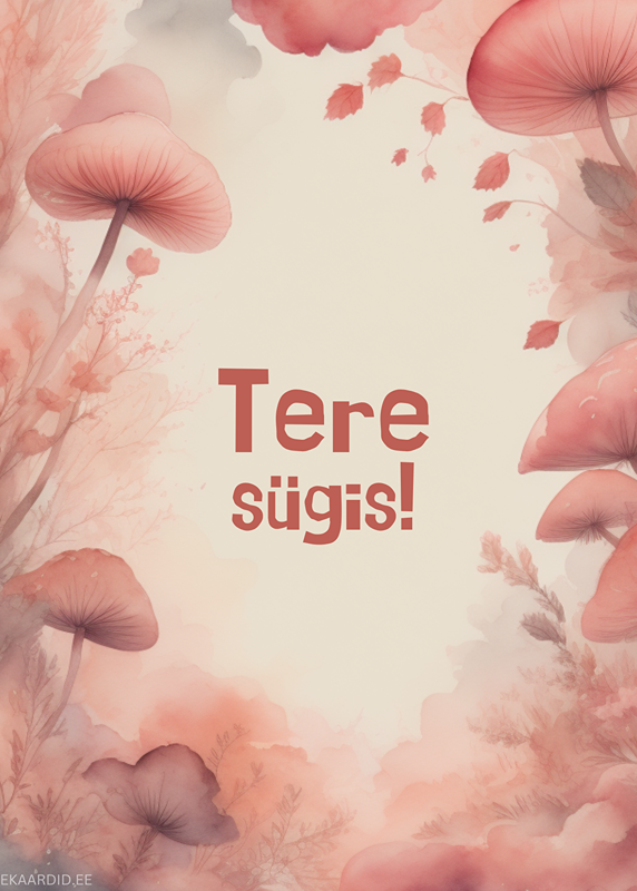 Sooja sügisest meeleoluga kaart, mis on kaunistatud akvarell-stiilis seente ja taimedega. Ideaalne sügisese tervituse saatmiseks.