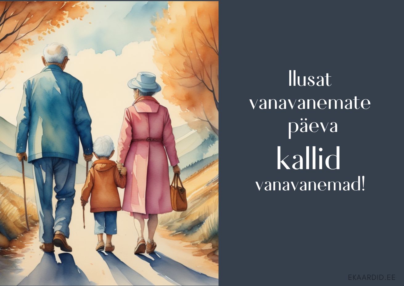Sooja ja südamliku sügisese maastikuga kaart vanavanemate päeva puhul. See on ideaalne tahtpäeva kaart, et väljendada oma armastust ja lugupidamist oma vanavanematele.