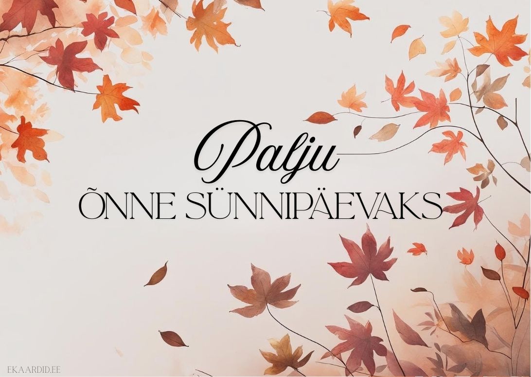 Sooja sügisvärvidega sünnipäevakaart, mis on kaunistatud langenud lehtedega. See on ideaalne sünnipäevakaart sügisesele sünnipäevalapsele.