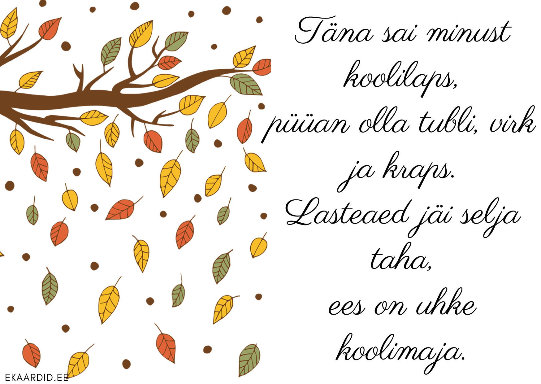 Soovi oma lapsele palju õnne koolitee alguse puhul selle sügislehelise kaardiga. See on ideaalne tahtpäevad-kooliga seotud kaart, mis tähistab uue etapi algust.