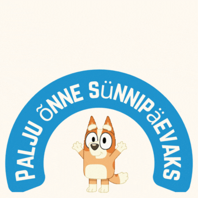 Sünnipäevakaart Bingo ja õhupallidega GIF