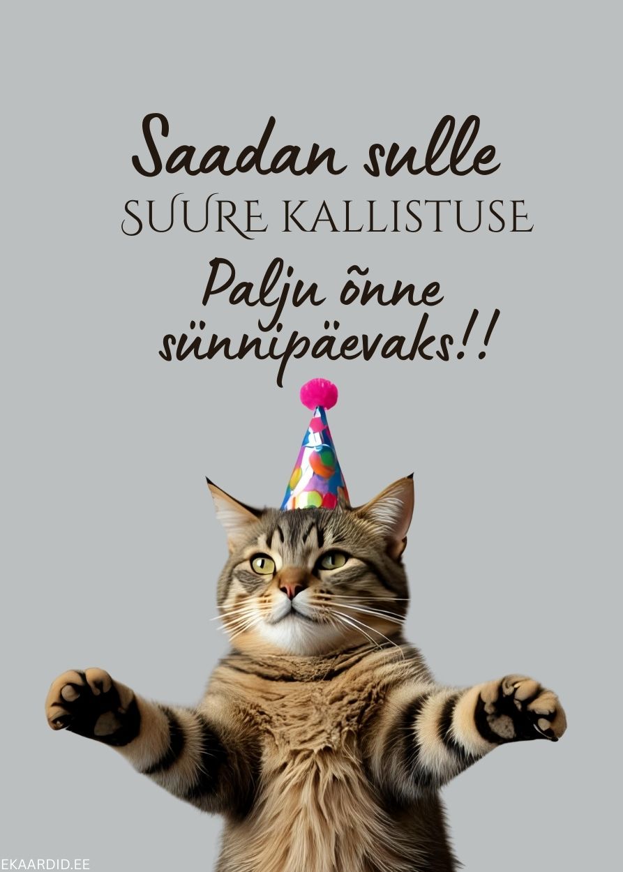 Sünnipäevakaart kallistava kassiga