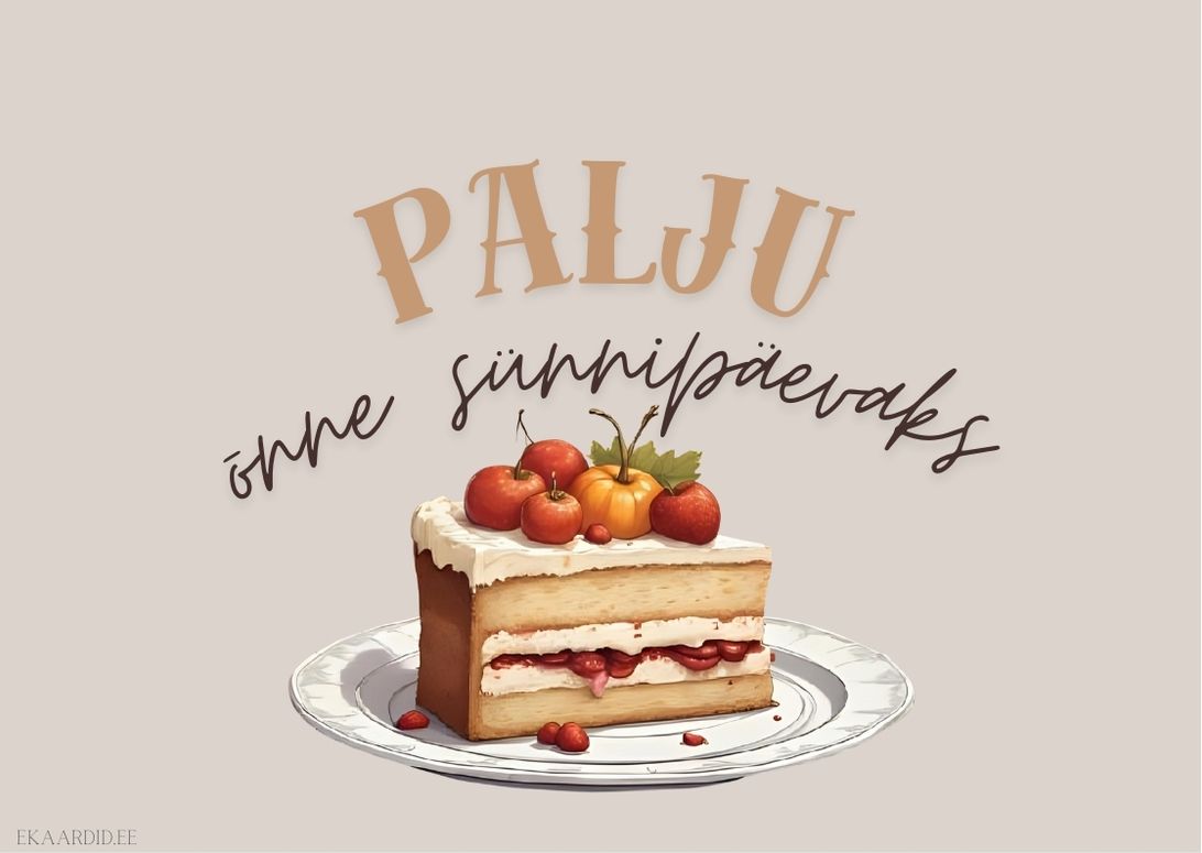 Soovi oma lähedasele palju õnne selle armsa sünnipäevakaardiga, millel on kujutatud isuäratav kook marjade ja väikese kõrvitsaga. See on ideaalne Sünnipäevakaart neile, kes armastavad magusat!