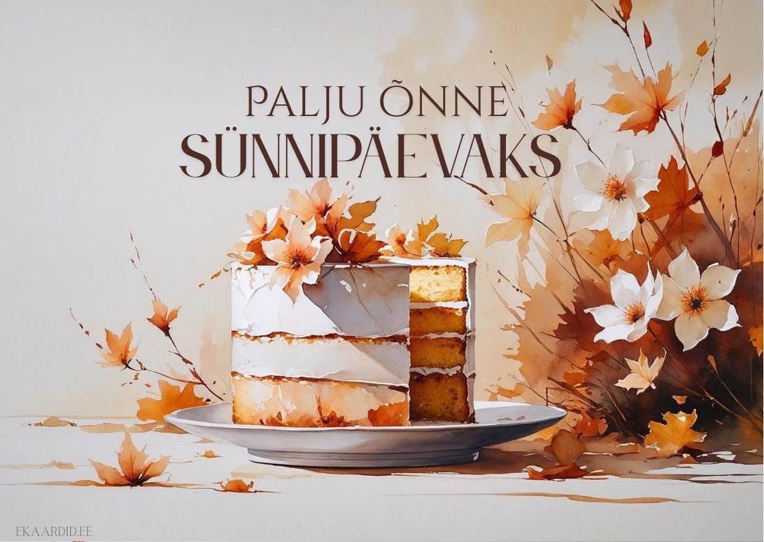 See on suurepärane sünnipäevakaart, mis on kaunistatud maitsva tordi ja õrnade lilledega. Soovi oma lähedasele palju õnne selle armsa kaardiga.
