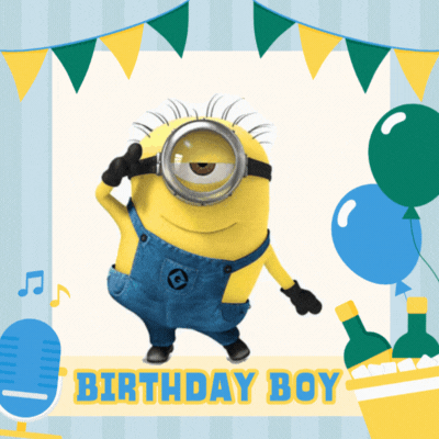 Sünnipäevakaart Minioni tegelasega GIF