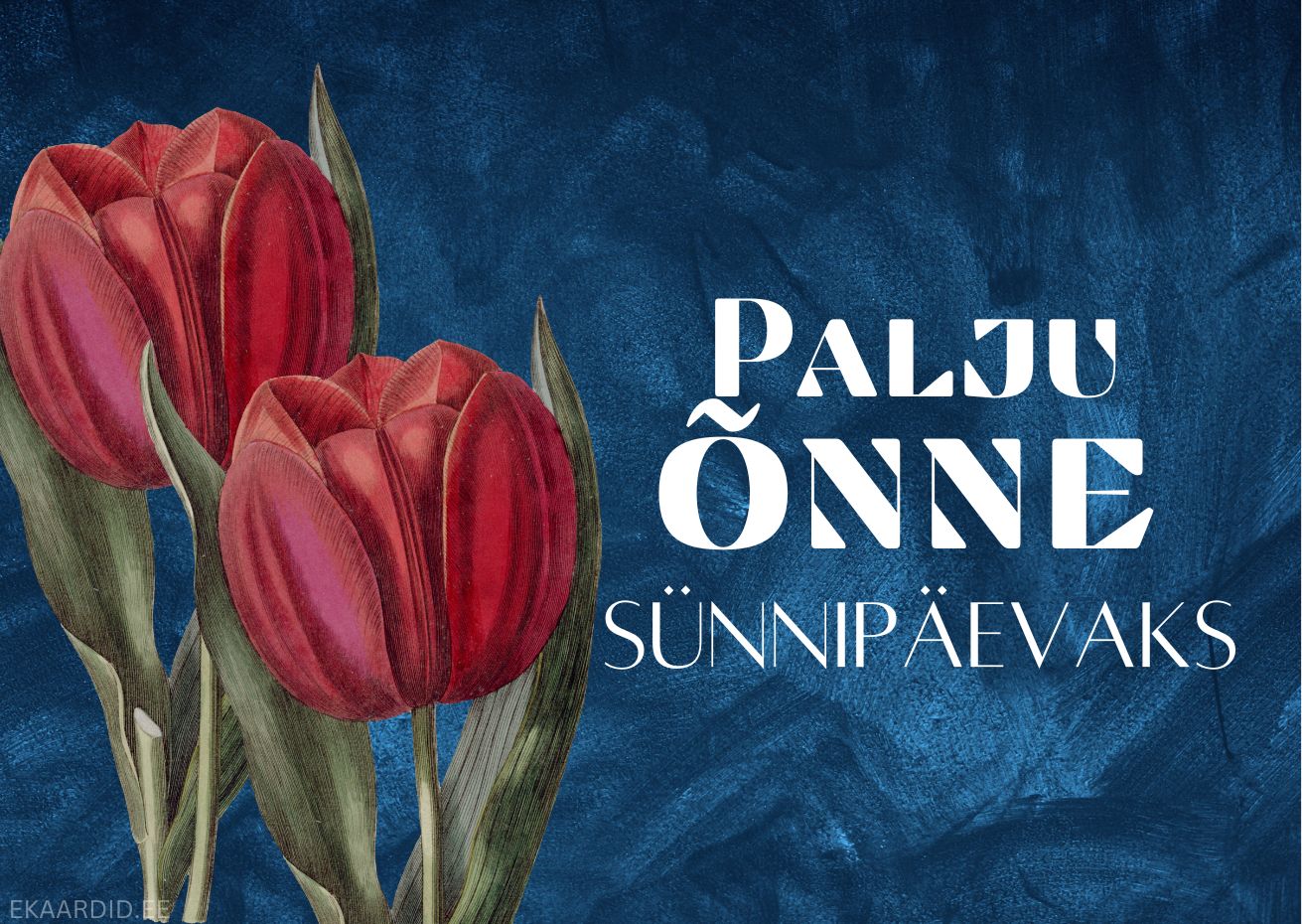 See on kaunis sünnipäevakaart, mis on kaunistatud kahe punase tulbiga. Ideaalne kingitus lähedasele sünnipäevaks.