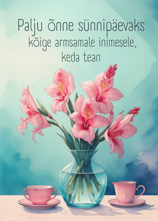 See on ideaalne Sünnipäevakaart kõigile, kes armastavad õrnu roosasid toone ja lilli. Saada see kaunis kaart oma lähedasele ja soovi talle palju õnne!