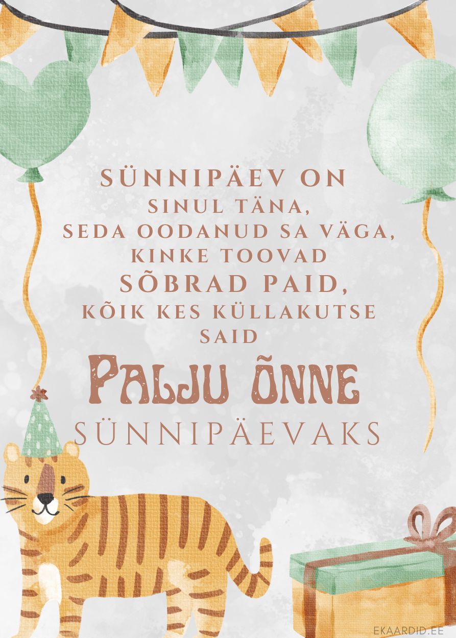 Soovi oma sõbrale või pereliikmele palju õnne selle armsa tiigrikujutisega sünnipäevakaardiga. See on ideaalne sünnipäevakaart, mis toob naeratuse näole.