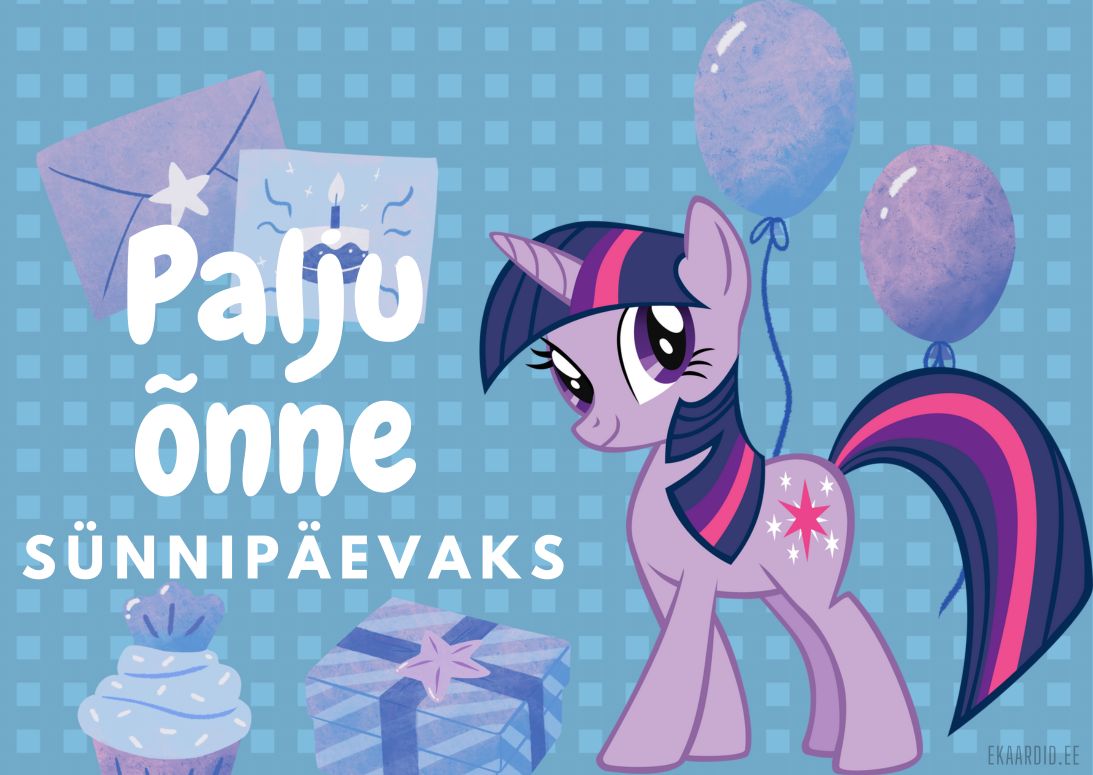 Soovi oma sõbrale või pereliikmele palju õnne selle armsa Twilight Sparkle'i sünnipäevakaardiga. See on ideaalne sünnipäevakaart tüdrukule, kes armastab ponisid.