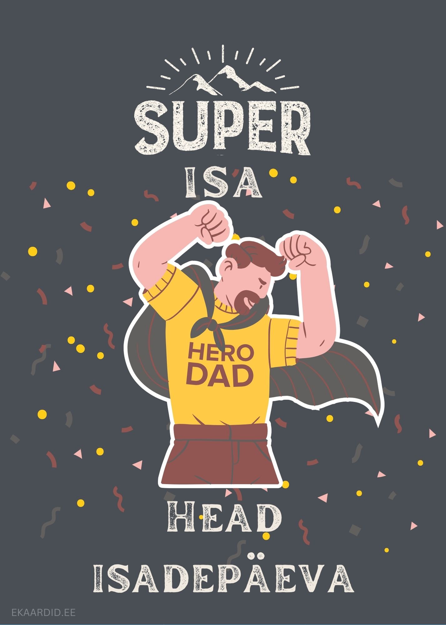 Soovi oma isale head Isadepäeva selle vahva kaardiga, kus isa on kujutatud superkangelasena. See on ideaalne Isadepäevakaart, mis toob naeratuse iga isa näole.