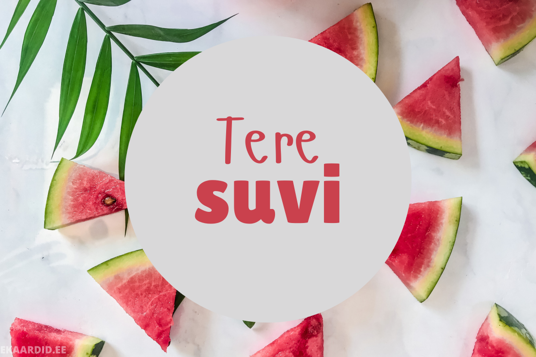 See on soe ja suvine tervituskaart, mis on kaunistatud värskelt lõigatud arbuusiviiludega. Ideaalne suve alguse tähistamiseks!