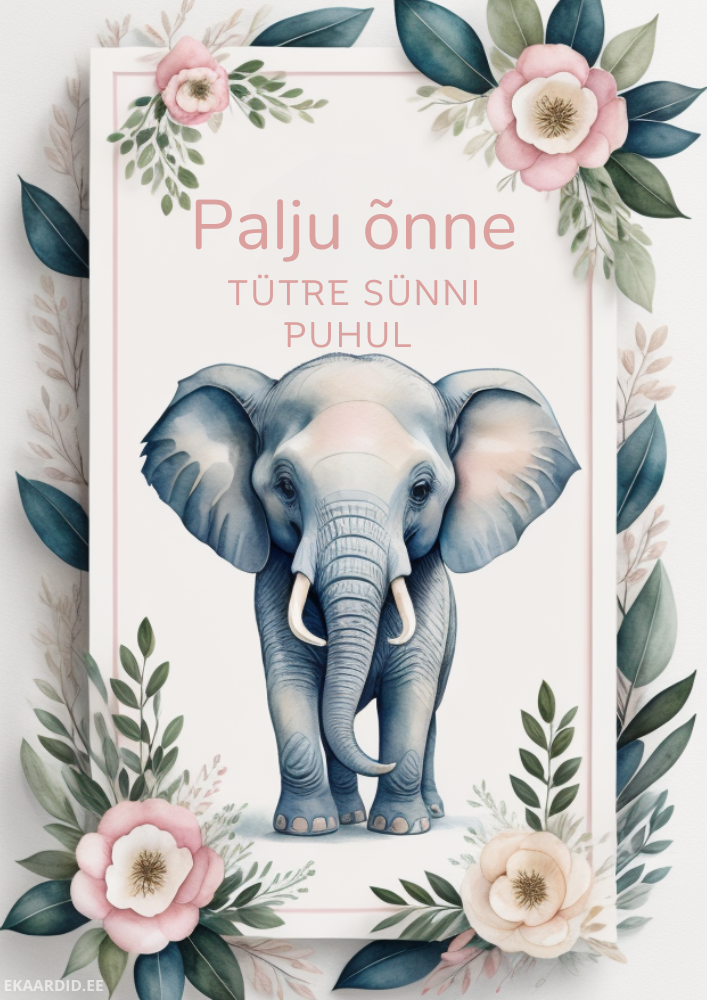 Soovi õnne tütre sünni puhul selle armsa elevandiloomaga kaunistatud kaardiga.