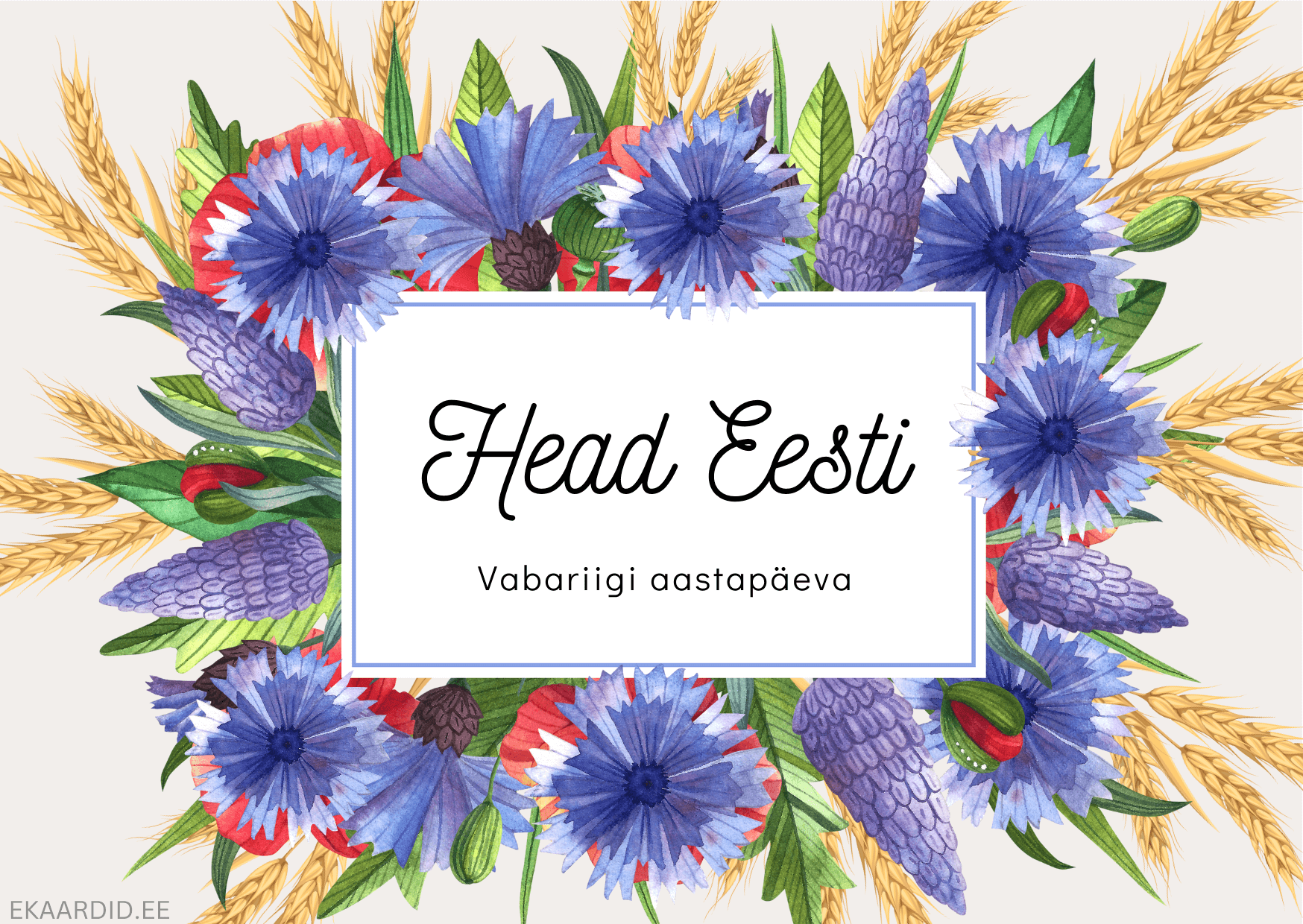 Soovi Eesti Vabariigile õnne selle kauni lillede ja nisukõrtega kaardiga. Ideaalne kaart Vabariigi aastapäeva tähistamiseks.
